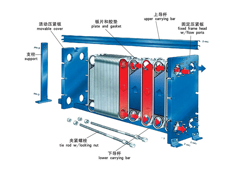 一、產品概述板式換熱器廣泛應用于供熱取暖、熱水洗浴、空調、液壓油冷卻、石油化工、制藥、食品加工等領域。板式換熱器是目前各類換熱器當中換熱效率很高的一種換熱器,它占用空間小,安裝拆卸方便。板式換熱器的結構分解如圖1,主要部件是由換熱板片、密封膠墊、夾緊板、導桿、夾緊螺栓組成。換熱板片是由不銹鋼板壓制成型,它上面開有4個流道孔,中部壓成人字形波紋,四周壓有密封槽。密封槽內粘有密封膠墊。換熱板片通過兩...